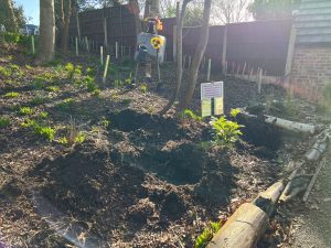 In last week’s one hour volunteer session we dug 18 holes in preparation for planting our award-winning prize funded woodland shrubs, that we are planting, alongside other tasks on Tuesday at 0930 hours at Rowlands’ Dell.