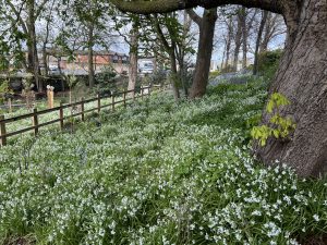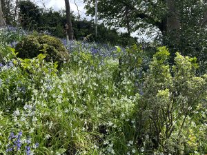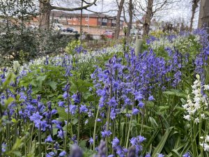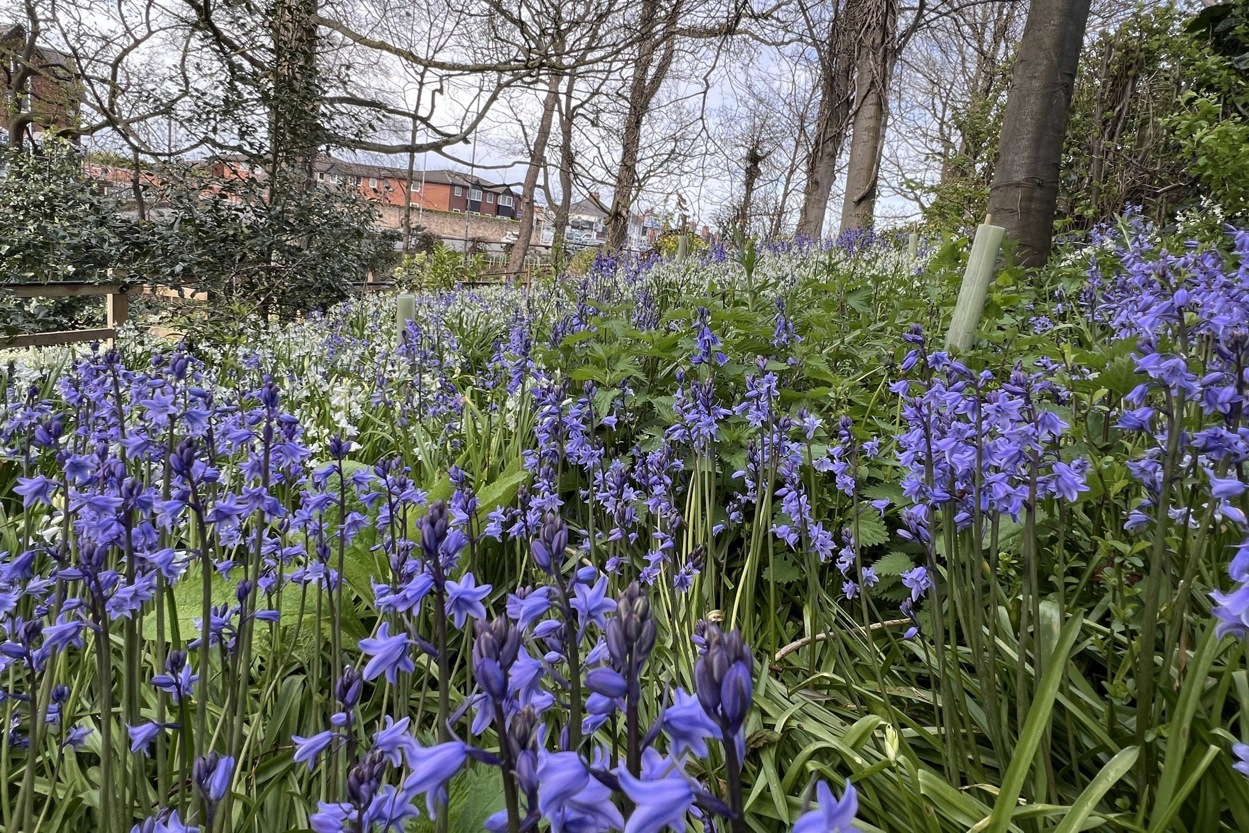 The beautiful nature displays continue at the UK Award Winning Rowlands Dell where the stunning 10,000 newly planted daffodils are now fading and being replaced by countless thousands of bluebells and huge carpets of ‘white bluebells’ (Three Cornered Leek). Next up are striking May displays of Alliums and Camassia.