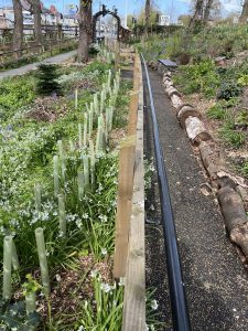 - Hedging replaced, added and weeded near archway and sunken garden, utilising leftover hedging