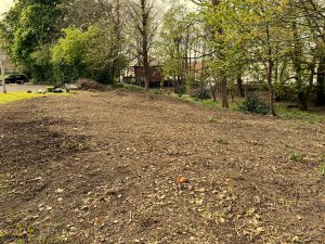 - We brush cut the newly exposed Ivy and bramble roots and runners, both on the north and south slopes.