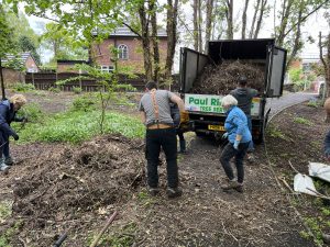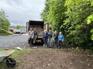 - Last Saturday (4.5.24) with the immensely kind support of Paul and Harry Richards (Tree Surgeons) our volunteers worked tirelessly to load two large heaps of cleared vegetation. Paul also generously paid for the recycling centre fee. Incredibly, they also dropped off three large loads of woodchip for the south slope (8.5.24), some of which has been raked into place.