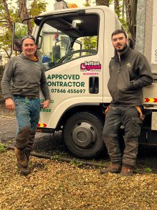 Paul and Harry proudly showing the Sefton 4 Good Award, after dumping their first load of woodchip in the lower South slope.