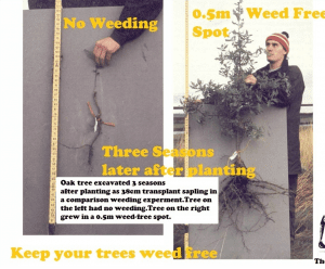 The amazing difference weeding can make to the growth of the trees