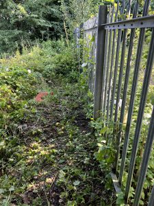 - brush cut a corridor behind the railway fence to reduce encroaching weeds and brambles and removed an assortment of fly tipping and transported to the recycling centre.