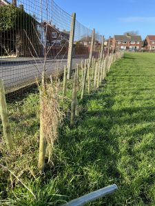 If you have one hour to spare, we are meeting for only One Hour, at Pimbley Field (Junction of Bridge Road and Fieldway, L31 5LX) at 10:30 hours on Thursday and Saturday (2.2.23 and 4.2.23) to spread some wood chippings around some our 3,000 young previously planted mixed wildlife friendly hedge trees and some weeding by removing grass from inside tree guards (pictured).