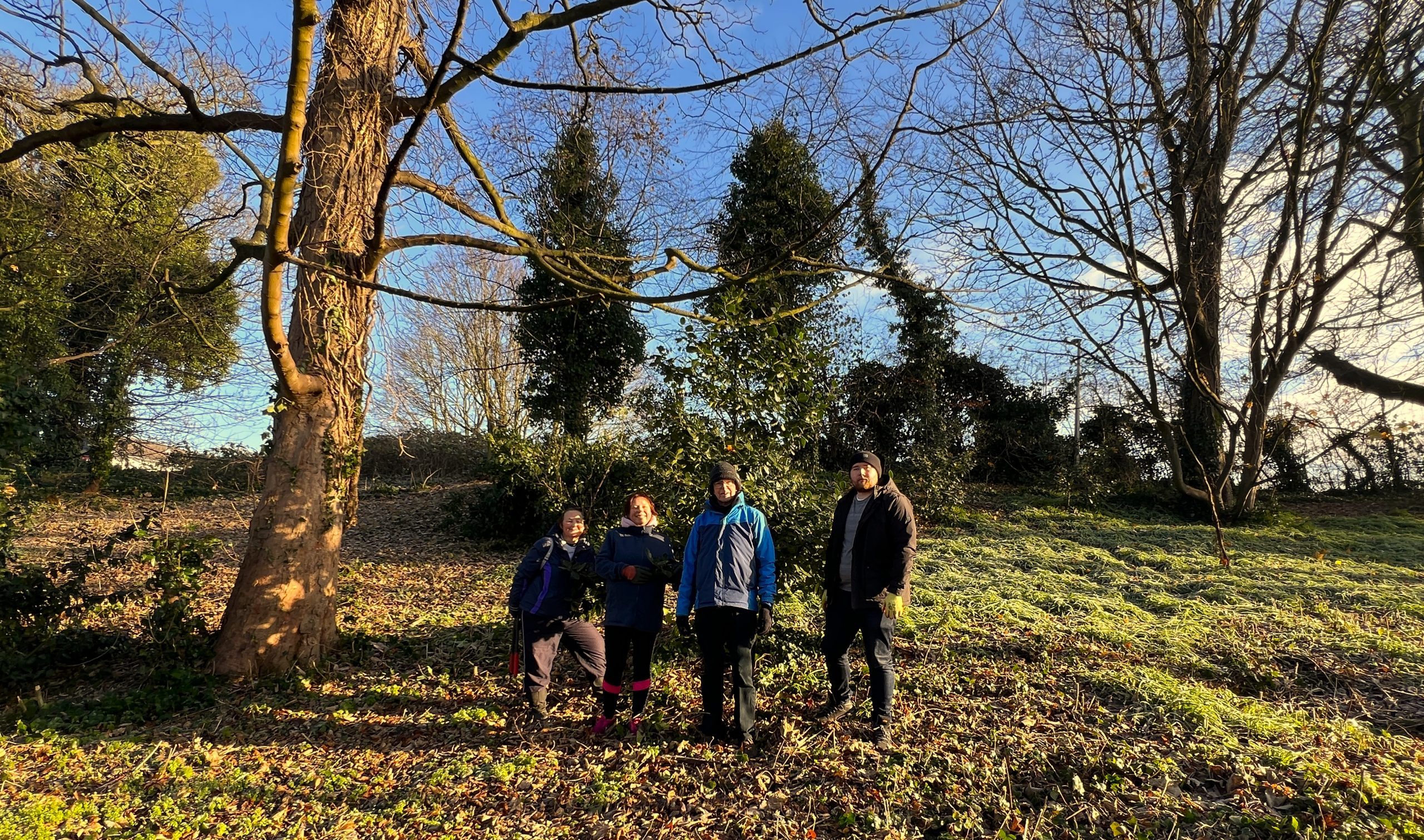 Huge thanks to: Chris (B), Joanne, John and Jordan, (Main Picture L to R), and not pictured Rebecca and Frank, for braving the cold to remove ivy from several more tree trunks, litter picking, removing brick debris, resulting in two agricultural bags of tenaciously damaging Ivy from are last session on the 2.12.23.
