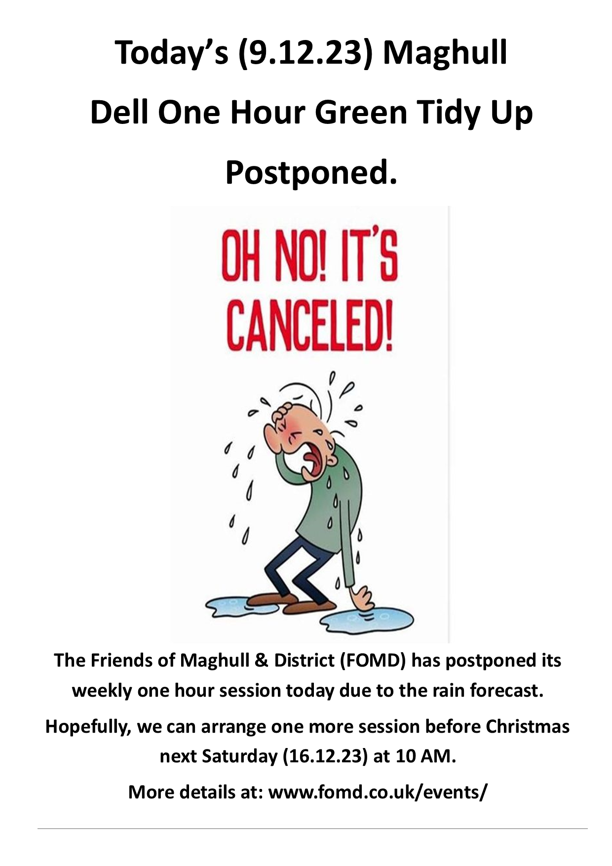 The Friends of Maghull & District (FOMD) will be delighted to welcome any volunteers to our next weekly one-hour tidy up of Maghull, which is our newest and biggest environmental project yet, entitled the NHS Wellness Dell.