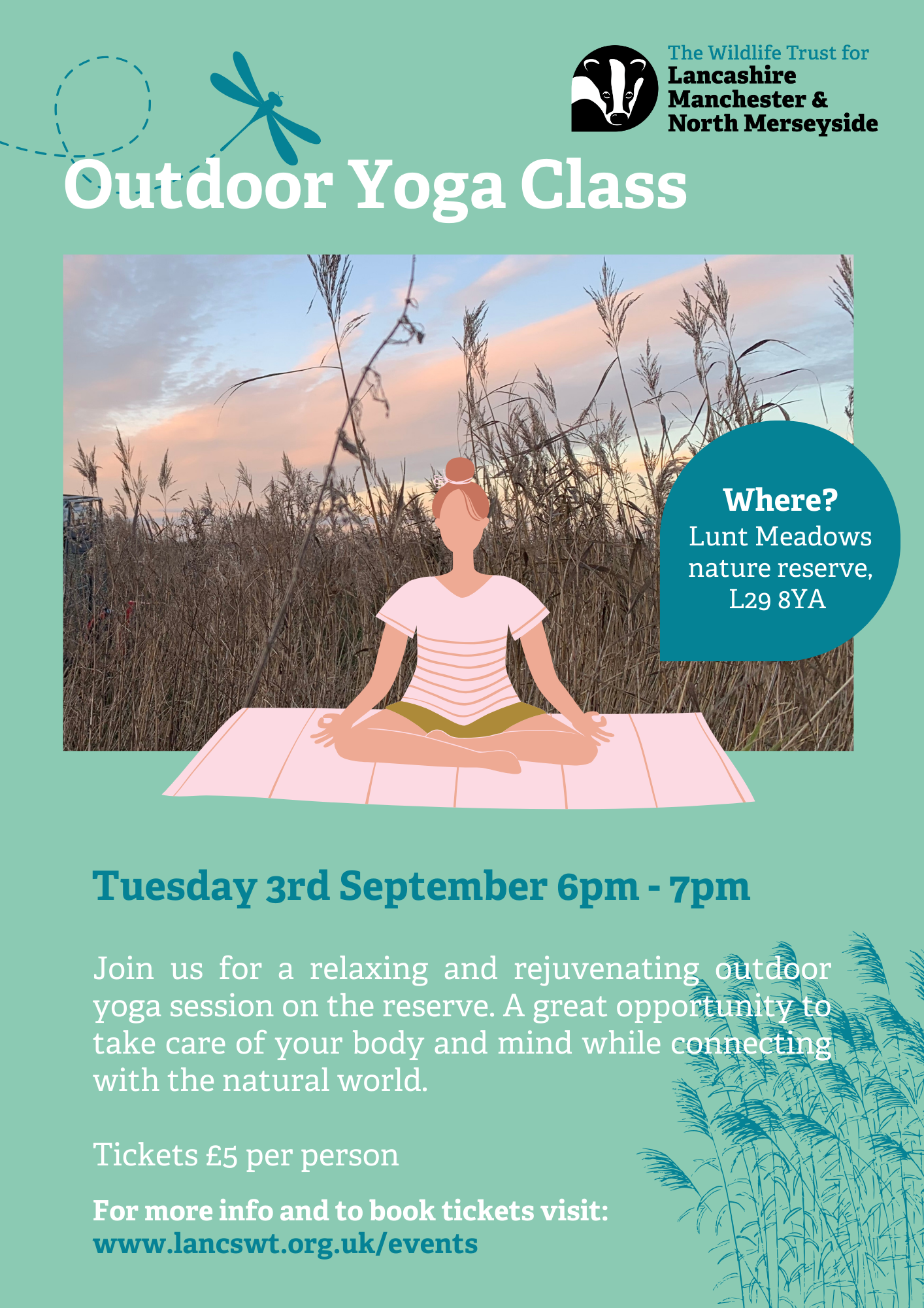 Outdoor Yoga at Lunt Meadows: Tuesday 3 September 2024 Time 6pm – 7pm.