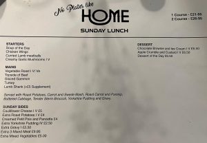 Their Sunday roast was the best we have ‘ever’ tasted. Every item on the plate was cooked to perfection and was an absolute taste sensation beyond compare. We had the turkey roast followed by apple crumble and custard which was equally tasty (see menu). We quickly made an advanced reservation for a family Christmas meal!