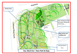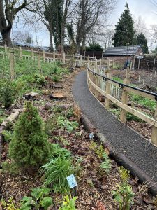 In Stage II (completed in November), with the help of our NHS landowner partners we successfully obtained a health and wellness grant (Maghull’s largest green investment) to fund an amazing legacy array of hard landscaping installations. These features provided accessibility for the whole community and included: accessible path, viewing/picnic area, sunken garden, bins, 10,000 bulbs and planting at small junction points, bug and bird boxes, and a dry waterfall feature). A Morrisons grant has enabled us to create the ongoing bog garden and wishing well.