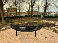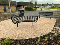 The newly installed block paved viewing area, resplendent with three benches and a bin provides