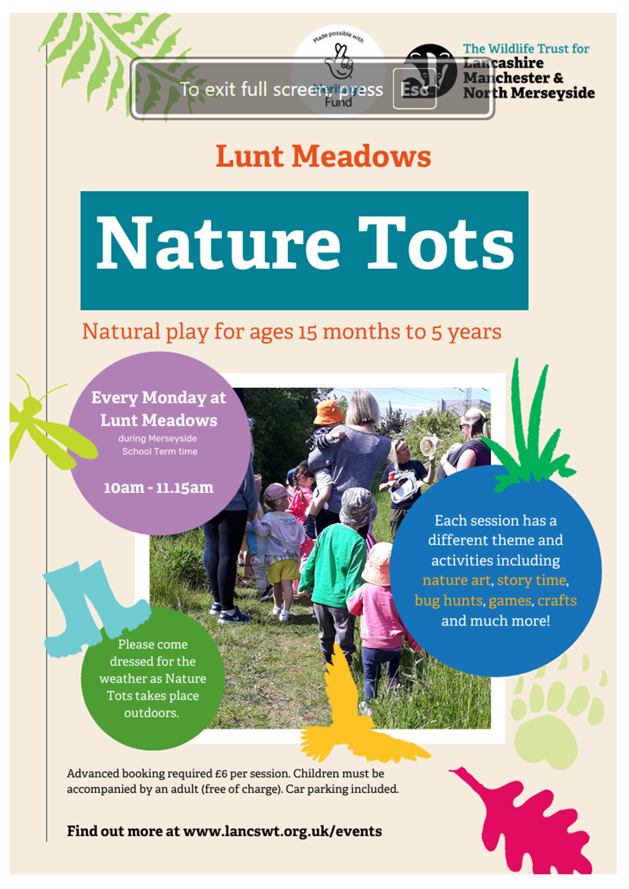 Nature Events on Maghull’s Doorstep: Every Monday Nature Tots at Lunt Meadows.