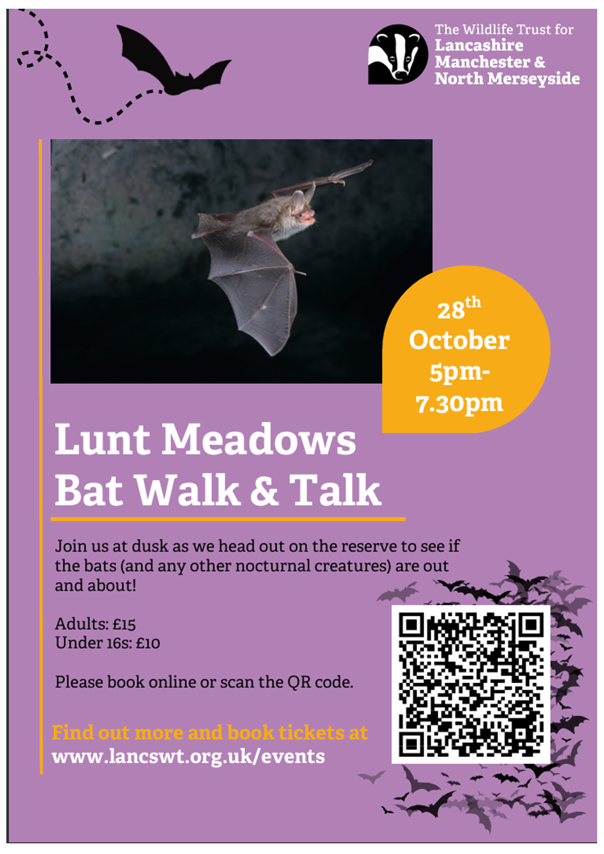 Nature Events on Maghull’s Doorstep: Bat Walk & Talk at Lunt Meadows (Tuesday 28.10.25).