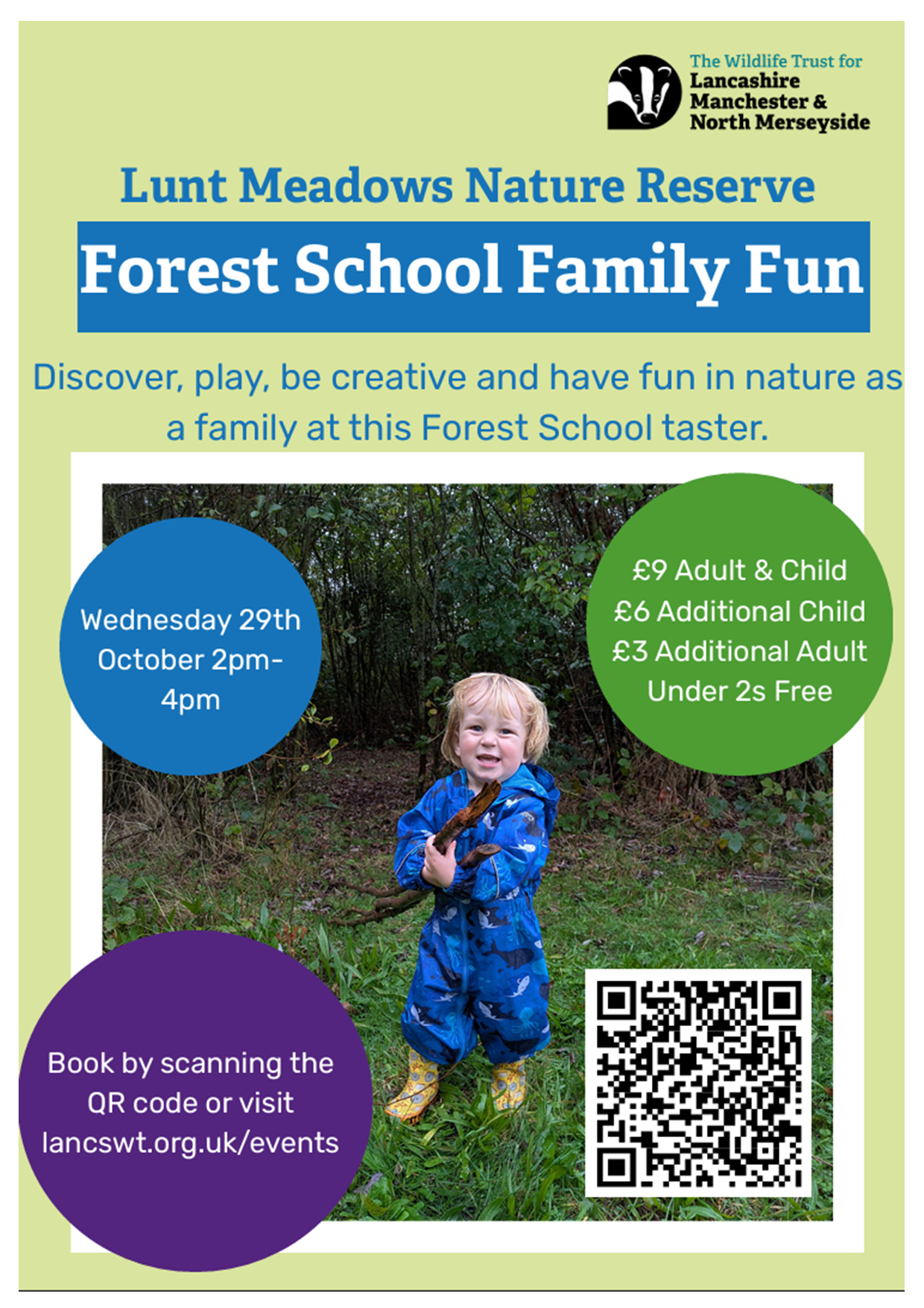 Nature Events on Maghull’s Doorstep: Forest School Taster, at Lunt Meadows (Wednesday 29.10.25).