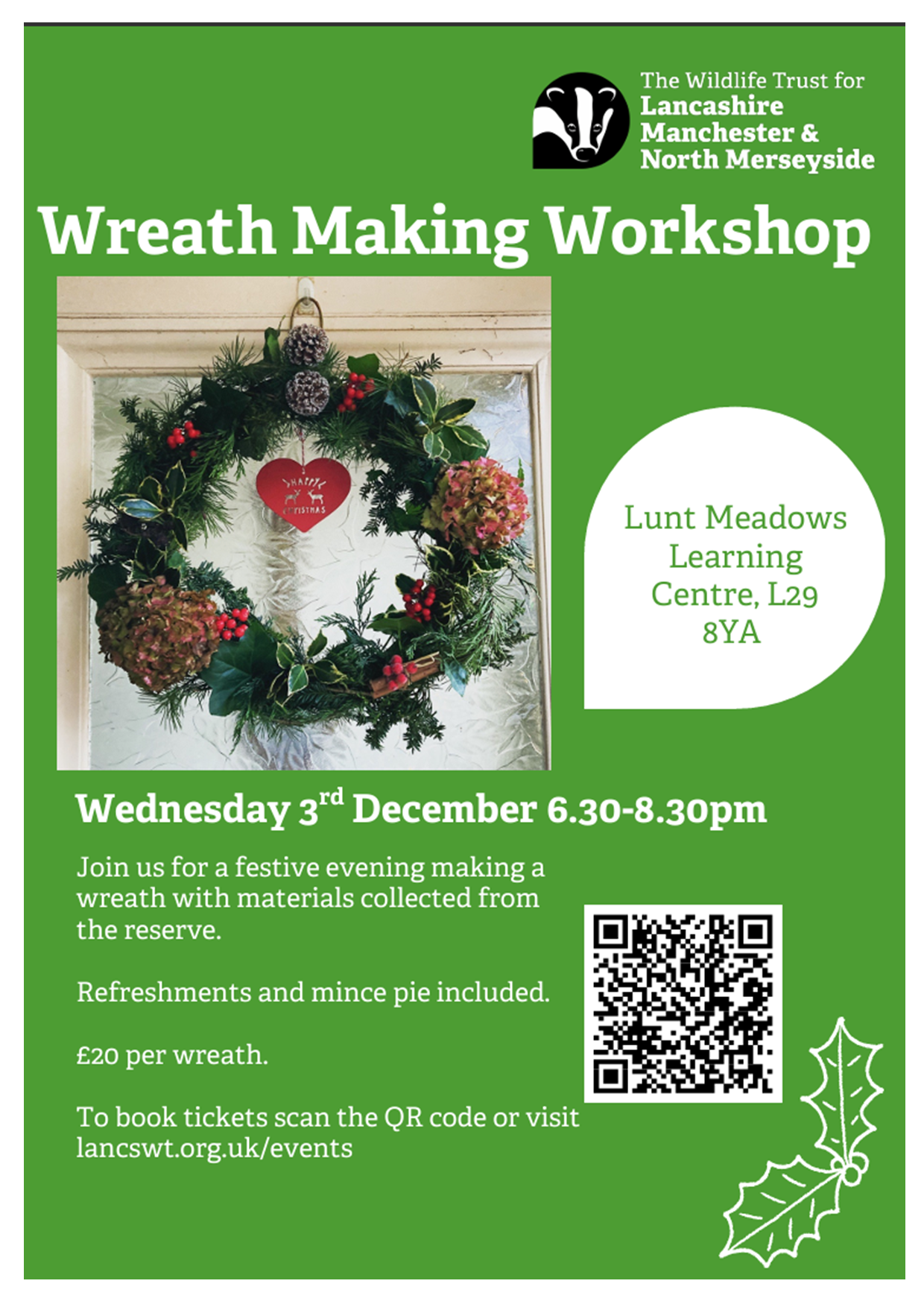 Nature Events on Maghull’s Doorstep: Wreath Making Workshop, at Lunt Meadows (Wednesday 3.12.25).