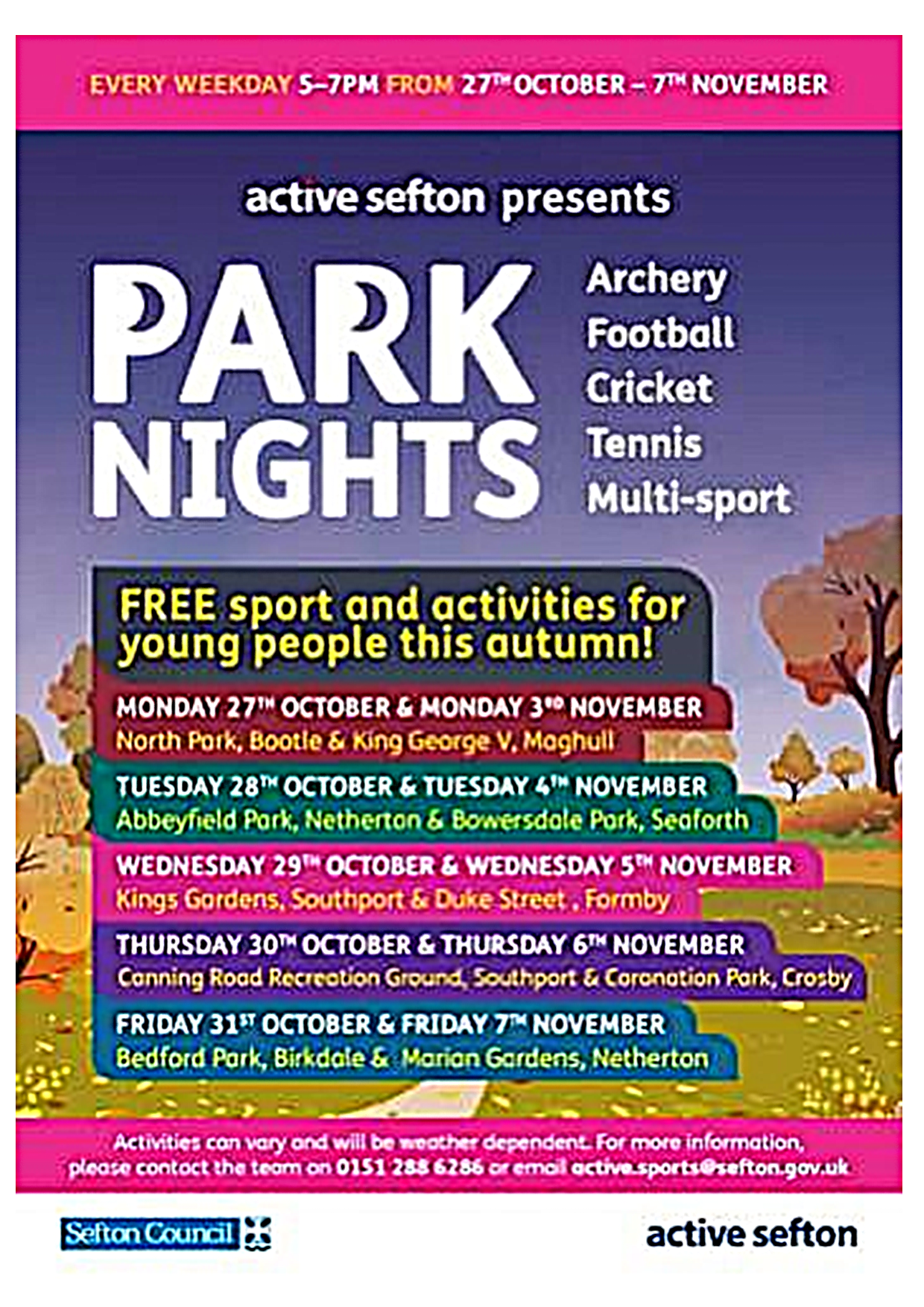 Free Sports and Activities for Maghull Children, in Maghull (25.10.23 & 1.11.23) and Locally (23.10.23 – 2.11.23).